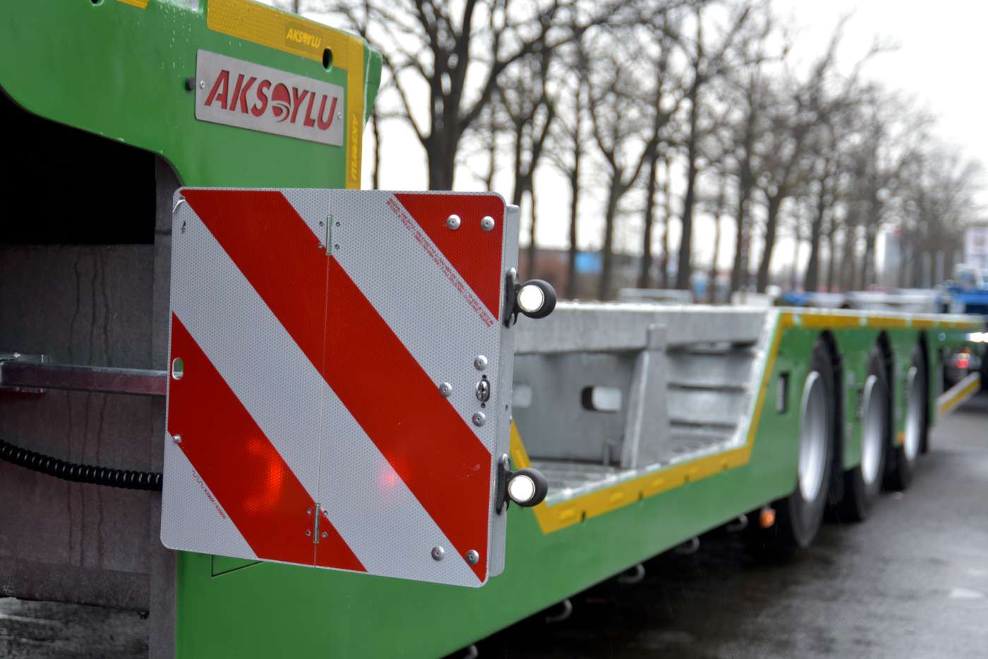 Aksoylu trailers worden geheel op klantwens geproduceerd in Turkije, en uitgerust met Europese componenten. Zo is alle hydrauliek, inclusief de lier op afstand te bedienen met afstandsbediening. De oplegger is verder uitgevoerd met BPW-assen, Wabco-remmen en electronica en Aspock verlichting. De eerste as is als liftas uitgevoerd.