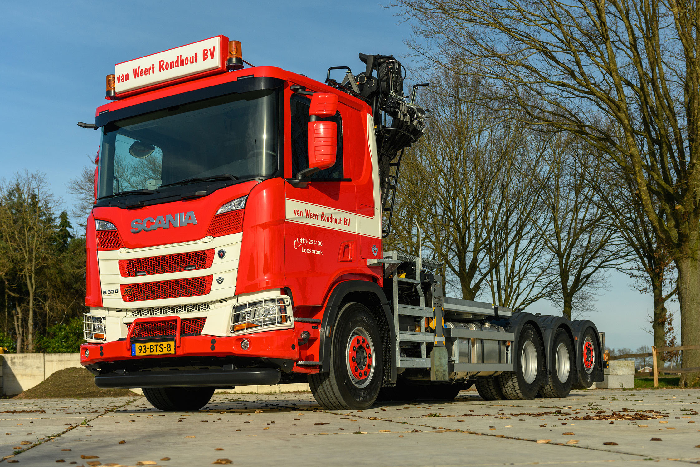 Van Weert Rondhout, gevestigd in het Brabantse Loosbroek, heeft een Scania B8x4*4 aangeschaft. De vierasser heeft een 530 pk sterke V8-motor en is voorzien van een autolaadkraan en een haakarm. Om de zwaarste werkzaamheden nog eenvoudiger te maken koos het boomverzorgingsbedrijf bovendien voor de robuuste XT-uitvoering.