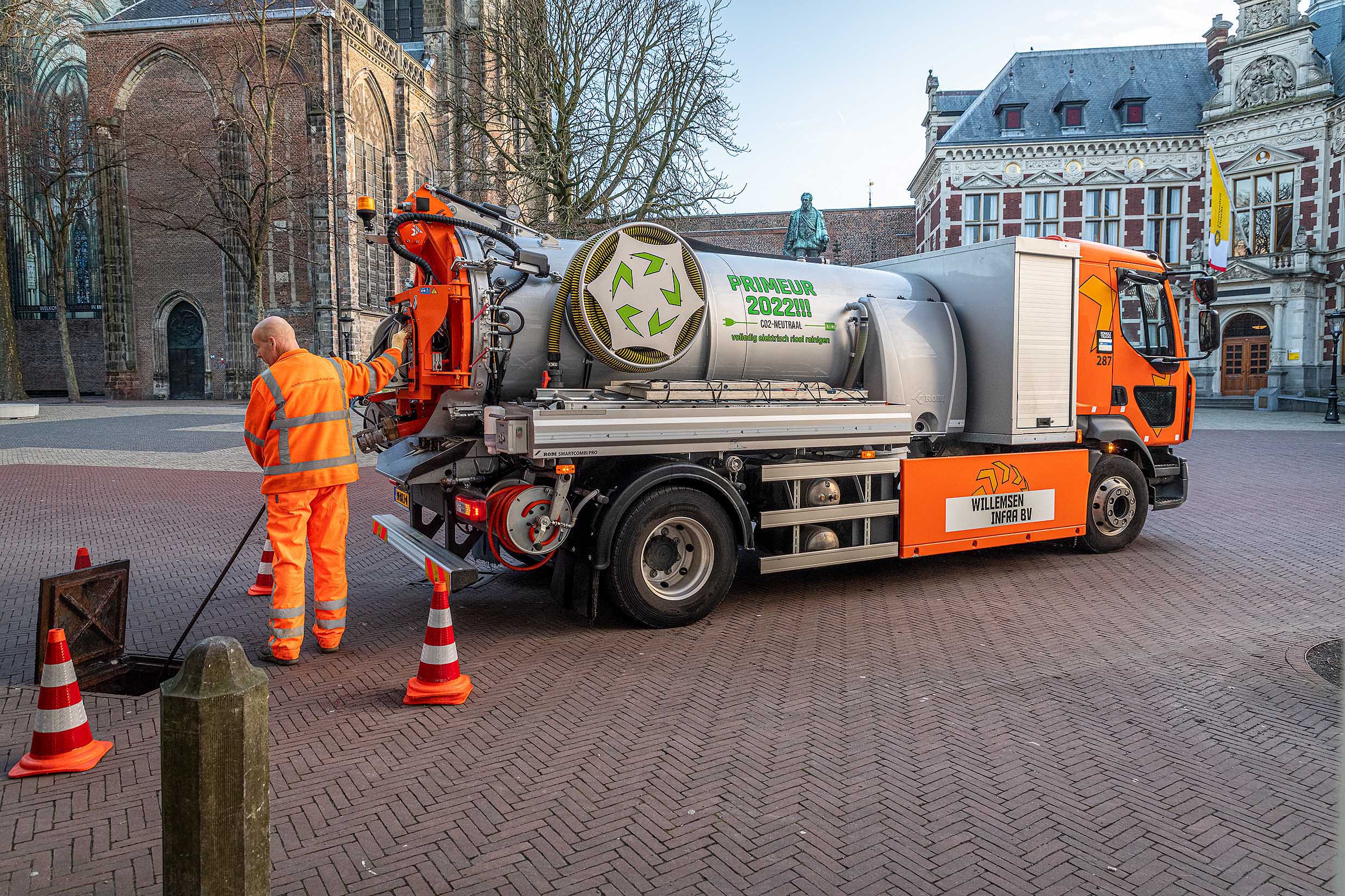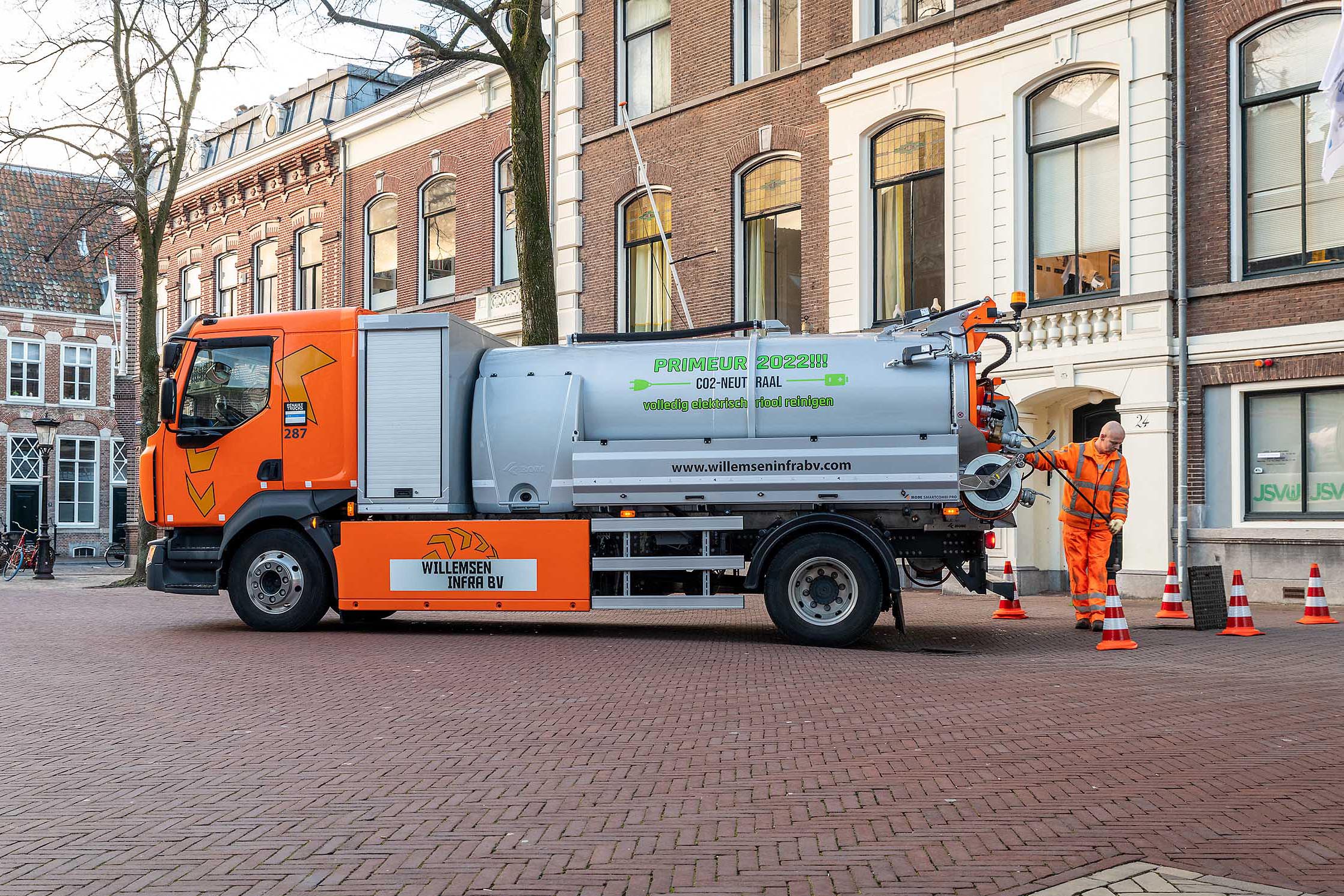 Deze eerste elektrische rioolcombi is geleverd aan Willemsen Infra, een allround bedrijf in de grond-, weg en waterbouw. Al drie jaar geleden heeft Willemsen Infra besloten om bij vervanging te. kiezen voor elektrisch. Dit geldt voor auto’s, bestelwagens, minigravers en nu dus ook deze rioolcombi.